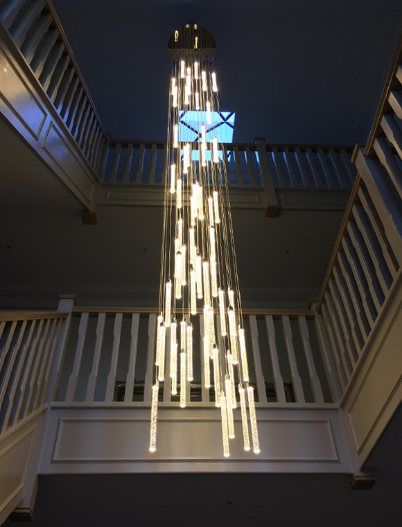 From spotlights and downlights to staircase chandeliers, our lighting experts select the best fixtures and strategically place them to create a welcoming atmosphere that captivates the eye, complements the connecting floors, and enhances visibility to reduce the risk of accidents.